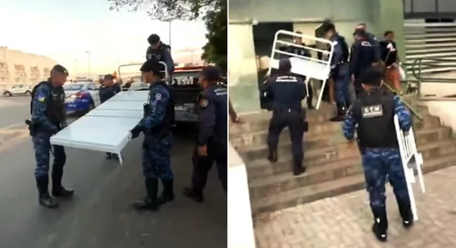 Momento da chegada da cama hospitalar na Delegacia de Juazeiro. (Foto: Reprodução/Redes Sociais)