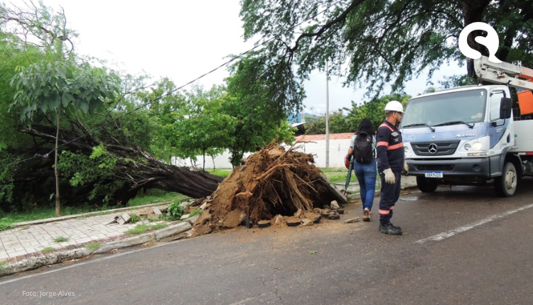 A queda da árvore chamou a atenção de quem passava pelo local e gerou preocupação quanto à segurança, já que há suspeita de que o tronco possa estar energizado. Técnicos da empresa responsável pela iluminação pública de Sobral foram acionados e isolaram a área como medida de precaução.