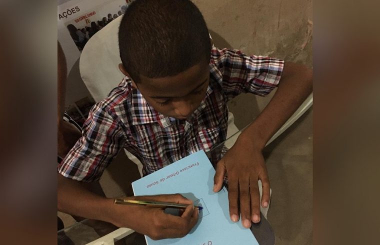 Os alunos passam o ano trabalhando com a leitura e a escrita, criam seu livrinho, digitam, e no dia da culminância dedicam a uma pessoa que eles escolhem”, disse a diretora Nara Denise.