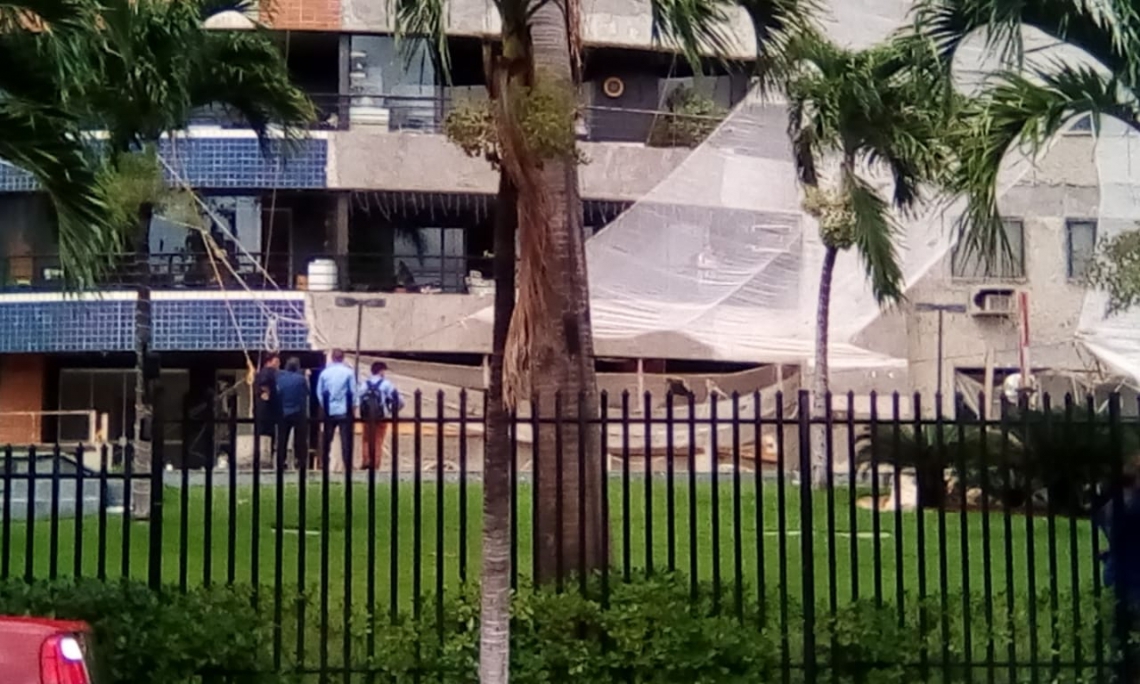 fachada do Edifício Laguna, em reforma (Foto: Via WhatsApp O POVO)