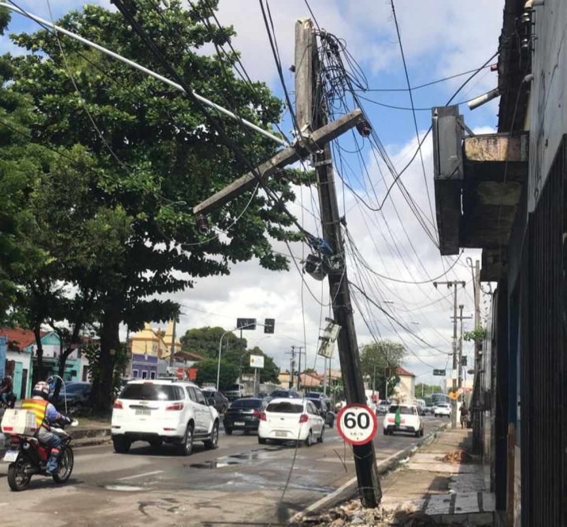 energia foi danificado na base e a parte superior cedeu, fazendo com que
