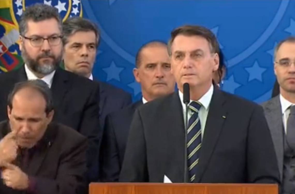 Presidente faz pronunciamento ao lado de ministros (Foto: reprodução/Facebook)