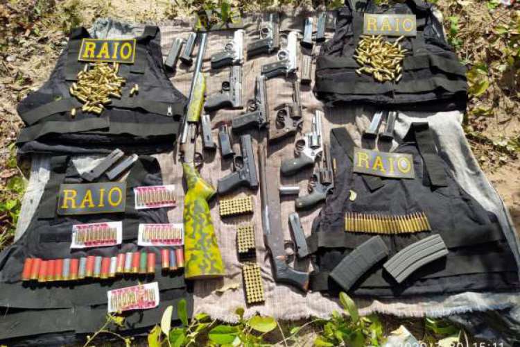 Onze armas de fogo foram apreendidas pelo Comando de Policiamento de Rondas e Ações Intensivas e Ostensivas (CPRaio) da Polícia Militar do Ceará (PMCE) em ação no município de Aquiraz, Região Metropolitana de Fortaleza (RMF). Material foi encontrado durante busca por grupo criminoso que estaria acampado na região.