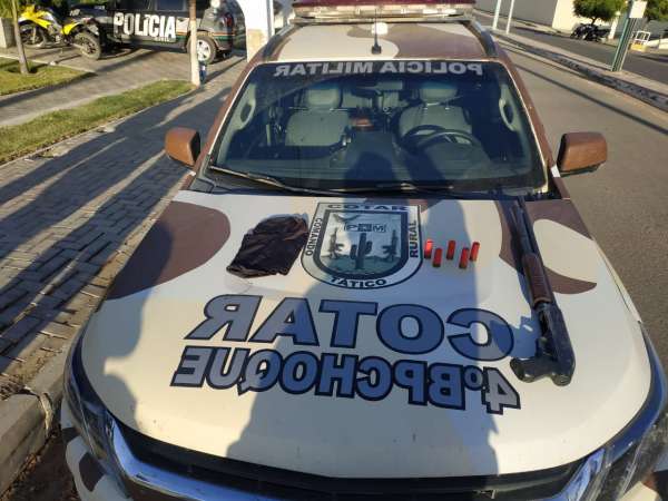 No começo da manhã de hoje, 09, policiais militares do Comando Tático Rural (COTAR), do 4º Batalhão de Policiamento de Choque da Polícia Militar do Ceará (PMCE), efetuaram a prisão de Osimar Evilásio da Silva, 42, em Jucás-CE. Com ele, os policiais militares apreenderam 01 espingarda calibre 12 de repetição, 05 munições intactas e 01 balaclava.