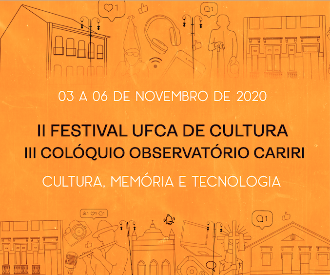 A Pró-Reitoria de Cultura da Universidade Federal do Cariri (Procult/UFCA) realizará o II Festival UFCA de Cultura e III Colóquio Observatório Cariri, no período de 03 a 06 de novembro de 2020. Pela primeira vez, e como um resultado da pandemia, o evento será feito inteiramente de maneira online.
