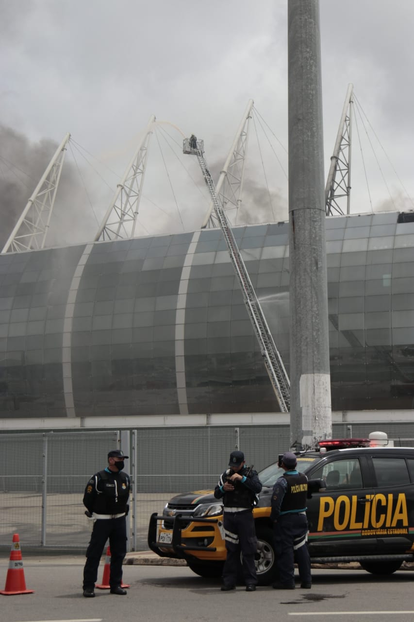 Incêndio no estádio Castelão na manhã deste sábado já foi controlado, afirma o coronel Ronaldo Rocha de Araújo, comandante geral do Corpo de Bombeiros. Ele informou que os danos foram apenas materiais, mas apenas a perícia que será feita no local poderá definir as causas do incêndio.