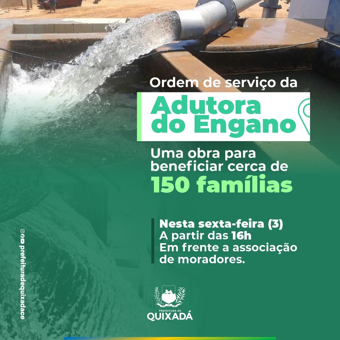 A assinatura da ordem de serviço para o imediato início dos trabalhos será realizada nessa sexta-feira (03), pelo prefeito de Quixadá, Ricardo Silveira, e o Deputado Estadual, Salmito Filho. Os trabalhos serão realizados pela Cagece em parceria com a prefeitura e a previsão é de que pelo menos 150 famílias sejam diretamente beneficiadas.