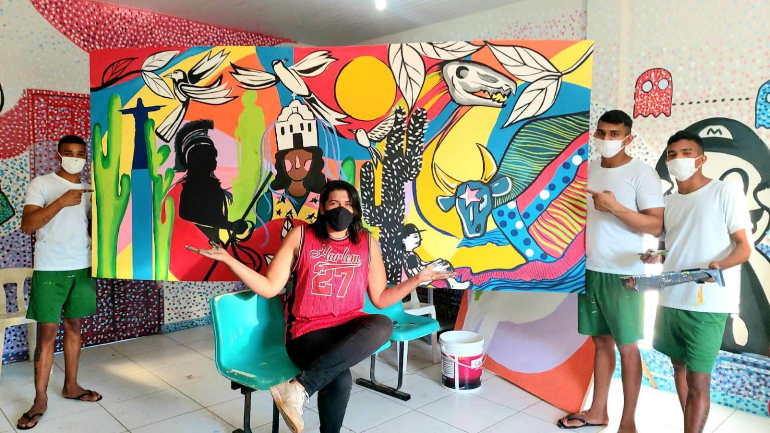 Crato é a sua terra, mas a pintura é o seu mundo. Pintor, cenógrafo, ator, produtor, fotógrafo e professor, o caririense Wanderson Petrova usa pincel, imaginação e talento para dar cores e vida aos centros socioeducativos do estado do Ceará. Desde 2017, Petrova, que é formado em Artes Visuais pela Universidade Regional do Cariri (Urca), faz parte da equipe da assessoria de arte e cultura da Superintendência do Sistema Socioeducativo do Estado do Ceará (Seas).