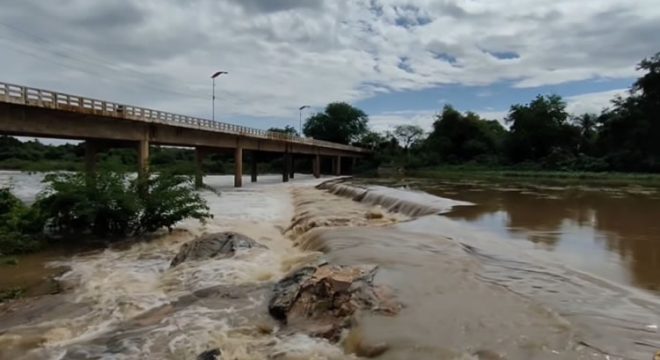 “Ontem eu mostrei um vídeo pra vocês em que a barragem (do Rio Salgado) ainda estava enchendo, foi de manhã, dia 31 de dezembro. Hoje, olha como tá o rio. Uma cheia muito boa”, narra o cearense Deyved Viana em seu canal do YouTube, focado no acompanhamento dos açudes. O vídeo foi gravado durante a manhã de ontem, dia 1º.