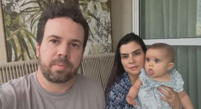 Prefeito de Barbalha, Guilherme Saraiva e sua esposa Catiane Saraiva e a filha bebê do casal. (Foto: Reprodução/Redes Sociais)