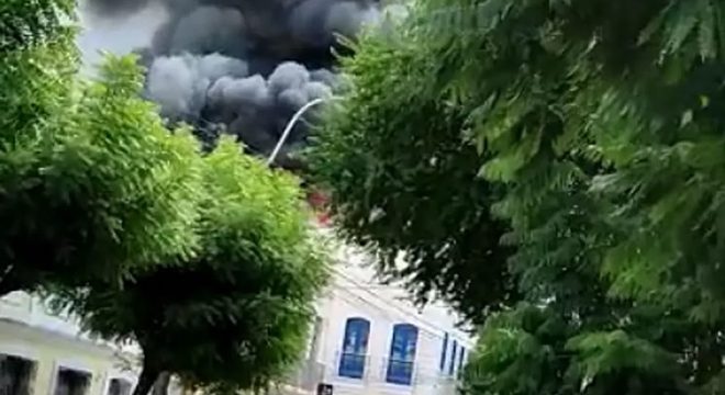 Um incêndio de grandes proporções atinge o prédio da Câmara Municipal de Sobral, no interior do Ceará, no início da tarde deste domingo (15). Segundo o Corpo de Bombeiros, não havia ninguém no local.