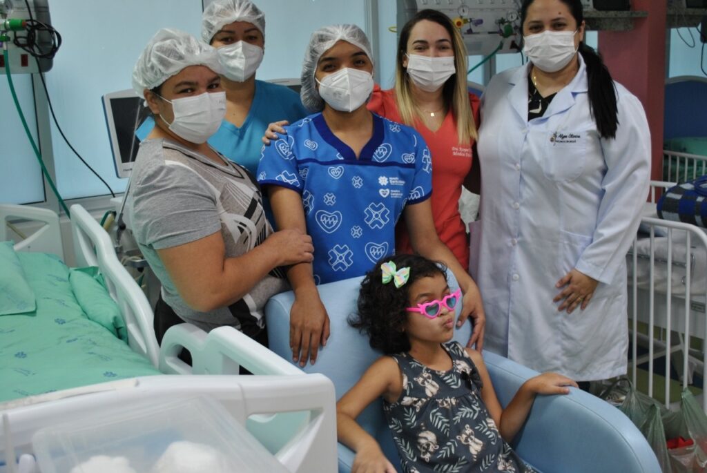 Depois de ficar 32 dias internada no Hospital Santo Antônio, em Barbalha, a pequena Maria Aparecida, de apenas 8 anos, voltou para casa na última segunda-feira (25), após passar por dois procedimento cirúrgicos para a retirada de um tumor no cérebro, sendo acompanhada pelos Drs. João Ananias e Alyne Oliveira, neurocirurgiões, e pela equipe da UTI Pediátrica.