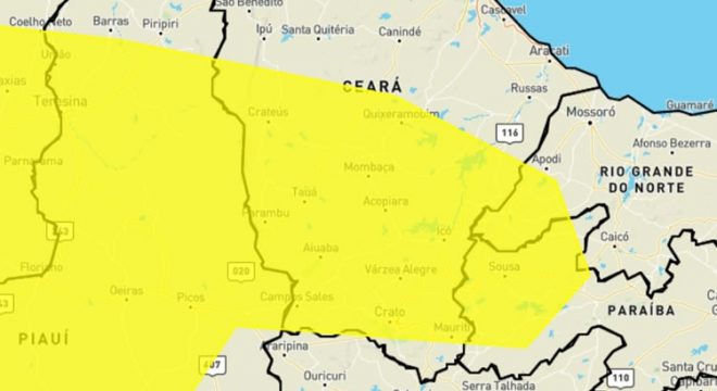 O Instituto Nacional de Meteorologia (Inmet) renovou o alerta de baixa umidade relativa do ar para a região sul do Ceará, incluindo o Cariri.
