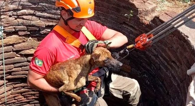 Segundo o subtenente Francisco da Silva Viana, comandante do socorro, foi montado um sistema de ancoragem, o que possibilitou um dos agentes descer na cacimba e resgatar o cachorro.