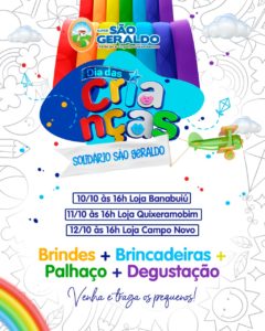 Além da ação em loja, o grupo São Geraldo também vai visitar escolas para entregar mimos para as crianças, uma forma de mostrar que a empresa quer está presente na vida da sociedade em geral.