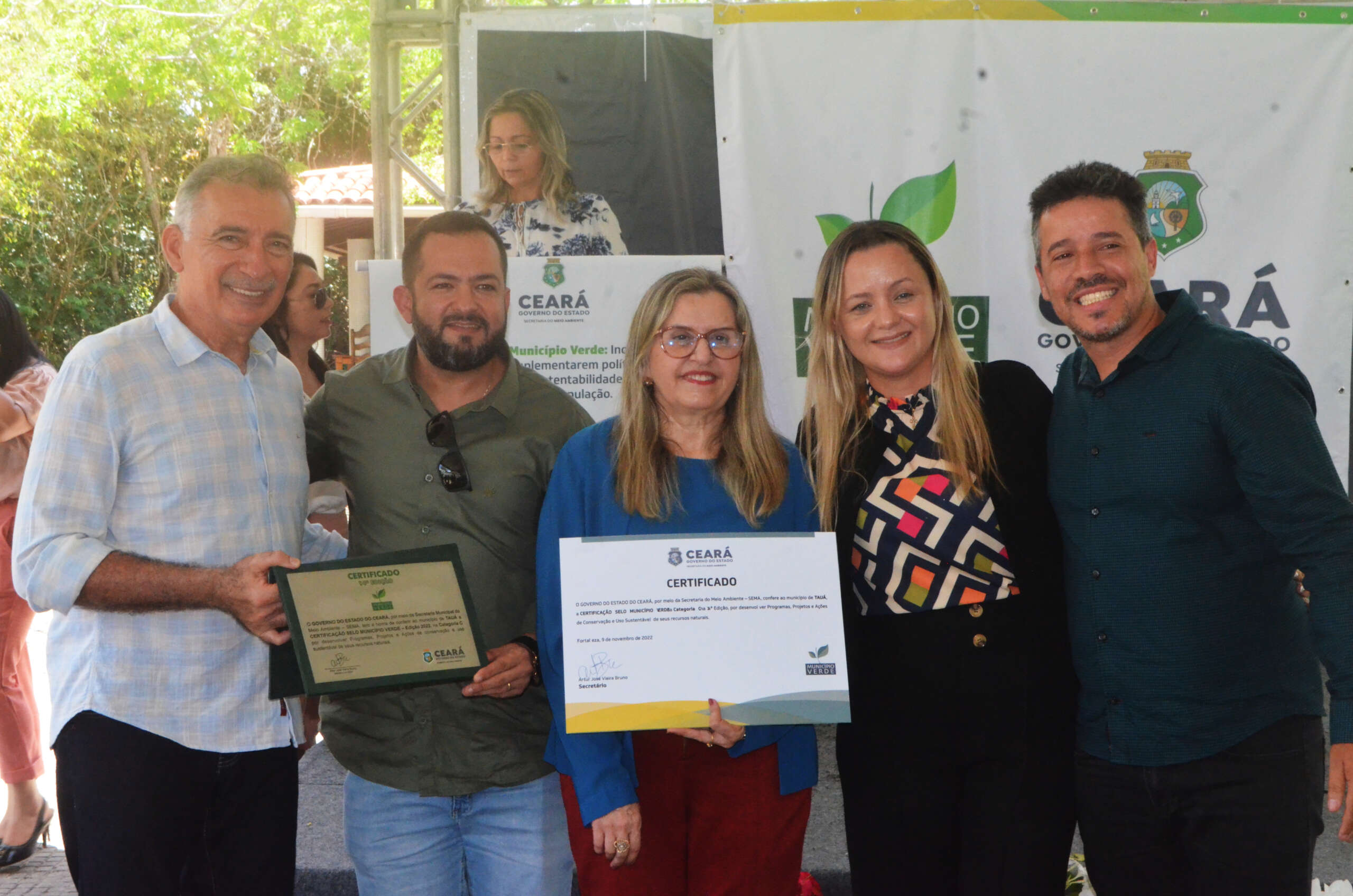 Em solenidade que ocorreu no Parque Estadual Botânico, em Caucaia, o governo do Ceará, por meio da Secretaria Estadual do Meio Ambiente (SEMA), entregou, nesta quarta (9), pela manhã, a Certificação Ambiental Selo Município Verde a 26 municípios classificados, na sua 14ª Edição. O evento teve o apoio da CAGECE.