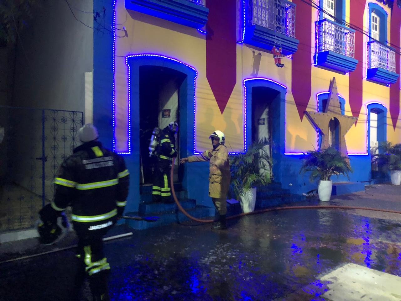 O incêndio iniciou no salão de acesso ao gabinete do prefeito. No local havia material de decoração do Natal de Luz.
