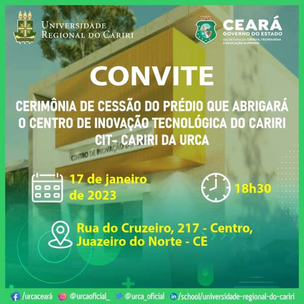 Para a URCA, o CIT Cariri é mais uma importante ação de contribuição com o desenvolvimento regional, sendo um instrumento de conexão dos diferentes atores do Ecossistema de inovação, além de proporcionar a comunidade acadêmica o avanço em ações de inovação e da realização de nossa missão de promover o ensino, pesquisa e extensão.