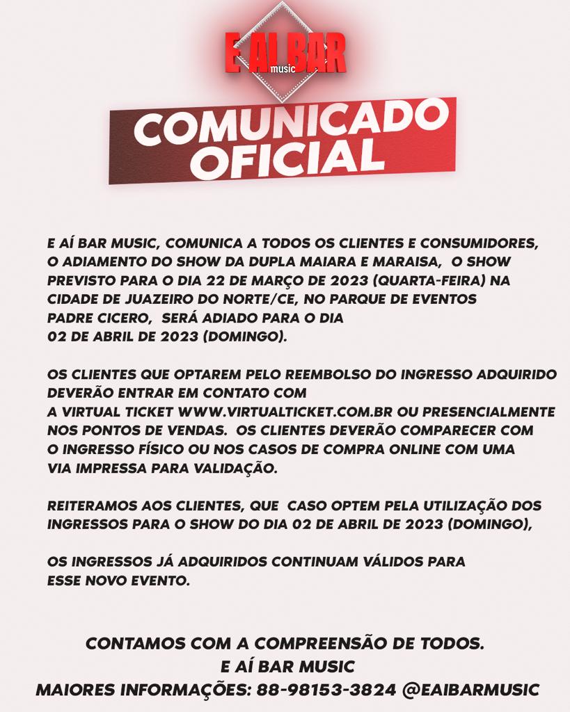 E Aí Bar Music: show de Maiara e Maraísa é adiado no Cariri