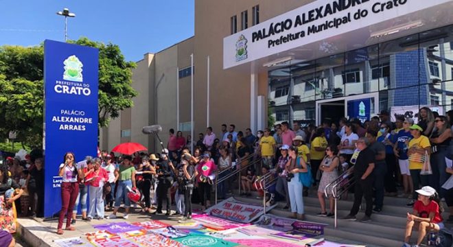 na manhã desta quarta-feira (8), na cidade do Crato, a caminhada do Movimento de Mulheres do Cariri realizada em defesa do bem viver, dos direitos e da democracia. A ação teve como foco principal o combate à violência de gênero e a proteção da vida das mulheres.