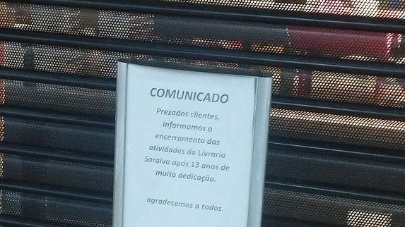 Clientes que tentaram acessar a unidade encontraram um comunicado da empresa: “Prezados clientes, informamos o encerramento das atividades da Livraria Saraiva após 13 anos de muita dedicação. Agradecemos a todos.”