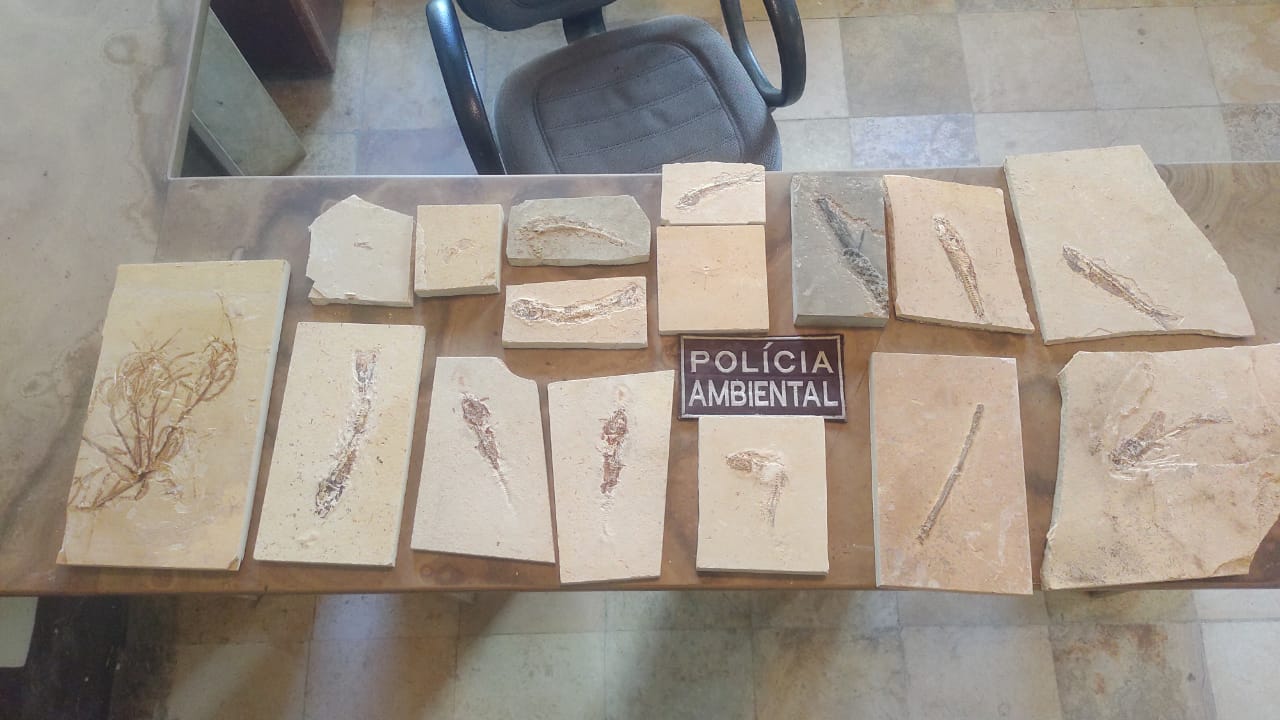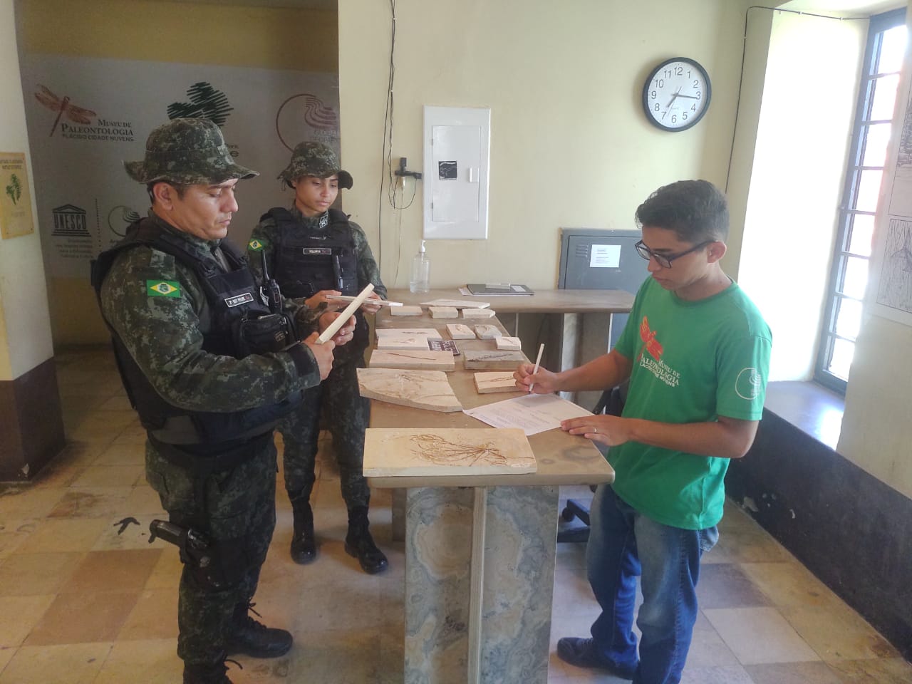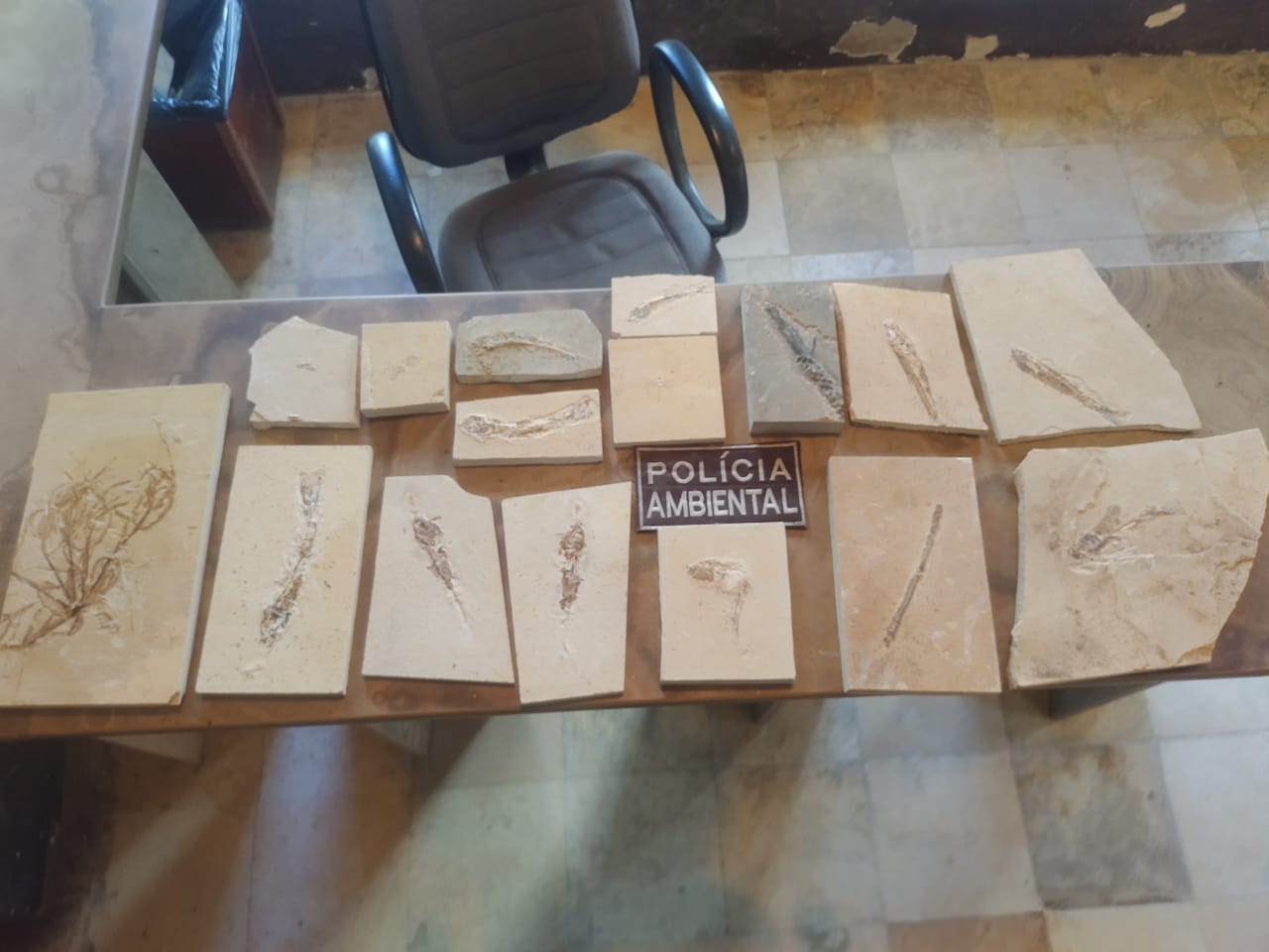 Por volta de 10h, durante fiscalização a pedreiras, em Pedra Branca, a equipe do BPMA realizou a coleta de 16 fósseis, dentre eles, 10 peixes (Chondrichthyes), uma planta (Ruffordia), três insetos (Incogemina Nubila) e dois não identificados.