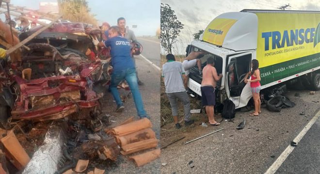 Veículos ficaram muito estragados após a batida na BR-230 em Lavras da Mangabeira (Foto: Reprodução)