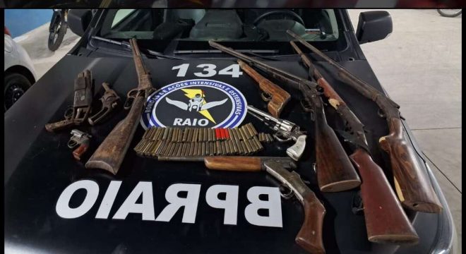 Militares do RAIO apreenderam muitas armas e munições. Foto: Reprodução