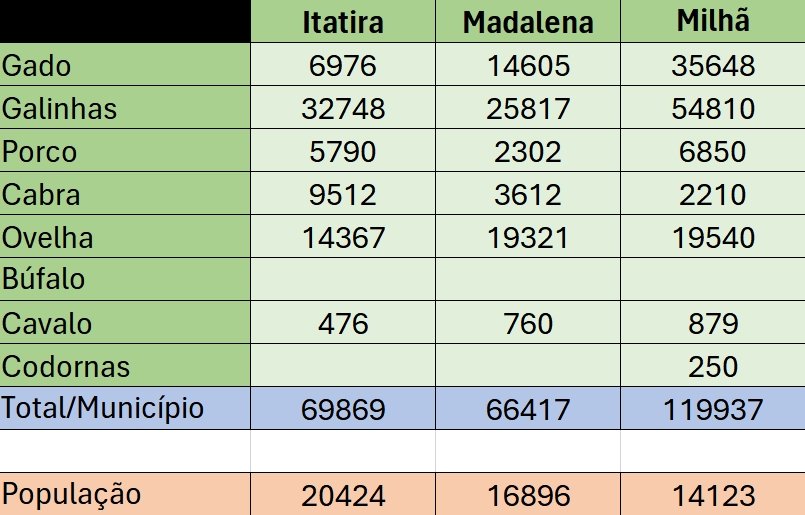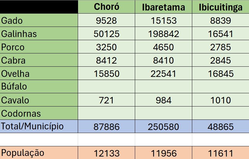 Conforme o levantamento, o Ceará possui mais de 44,5 milhões de animais de criação, sendo gado, galinha, porco, cabra, ovelha, búfalo, cavalo e codornas.