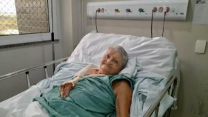 Maria Zeneide Vitoriano, moradora de Senador Pompeu, levou uma queda da própria altura, fraturou o quadril e precisou fazer uma artroplastia, que é a substituição total ou parcial de uma articulação do corpo por uma prótese. Na triagem, a paciente informou ser testemunha de Jeová, cuja crença religiosa tem restrições sobre transfusões sanguíneas.