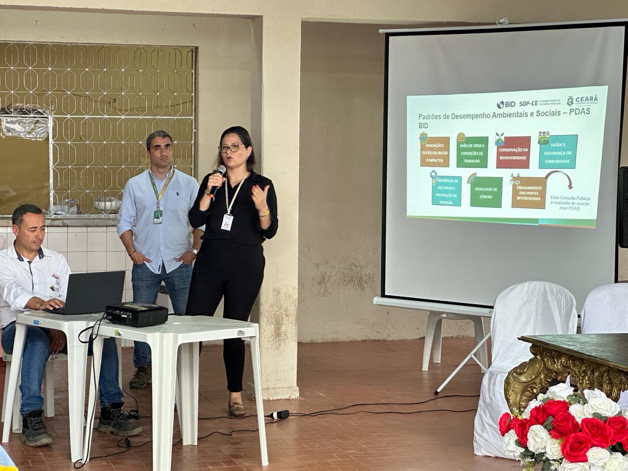 em Abaiara, o encontro aconteceu na Escola Municipal Rita Tibúrcio de Luna, com foco na explanação sobre as futuras intervenções na CE-496, que serão executadas no trajeto de 17 km, entre Abaiara e Brejo Santo. Os prefeitos de ambos os municípios, Afonso Tavares e Gislaine Landim, abriram o evento, e na sequência a equipe técnica da SOP expôs as características da estrada e viabilidade da obra para os abiarenses e brejossantenses presentes, somando 90 participantes.