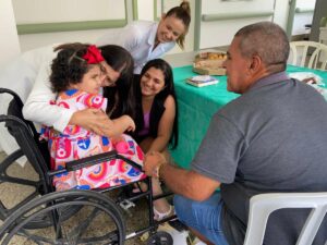 “Os profissionais da neurocirurgia deste hospital fazem parte da nossa vida e da vida da nossa história. É quase como se fossem da minha família, por isso eu tive que vir comemorar o aniversário da minha filha aqui”, explica a Dinara Brito, mãe da paciente.