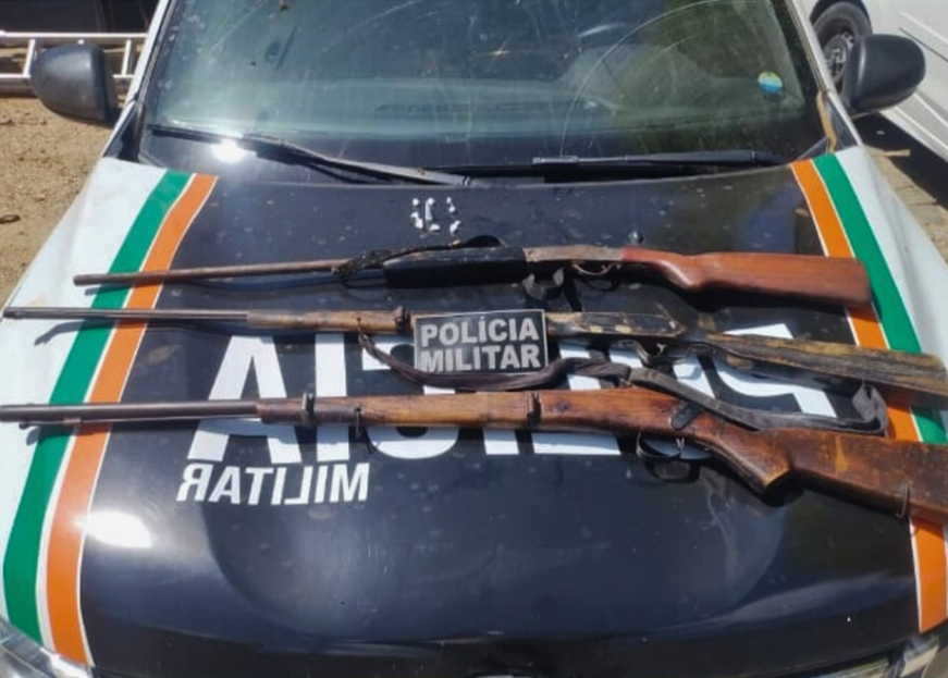 Uma ação da Polícia Militar resultou na apreensão de três armas de fogo no município de Deputado Irapuan Pinheiro. Os suspeitos conseguiram fugir do cerco policial.