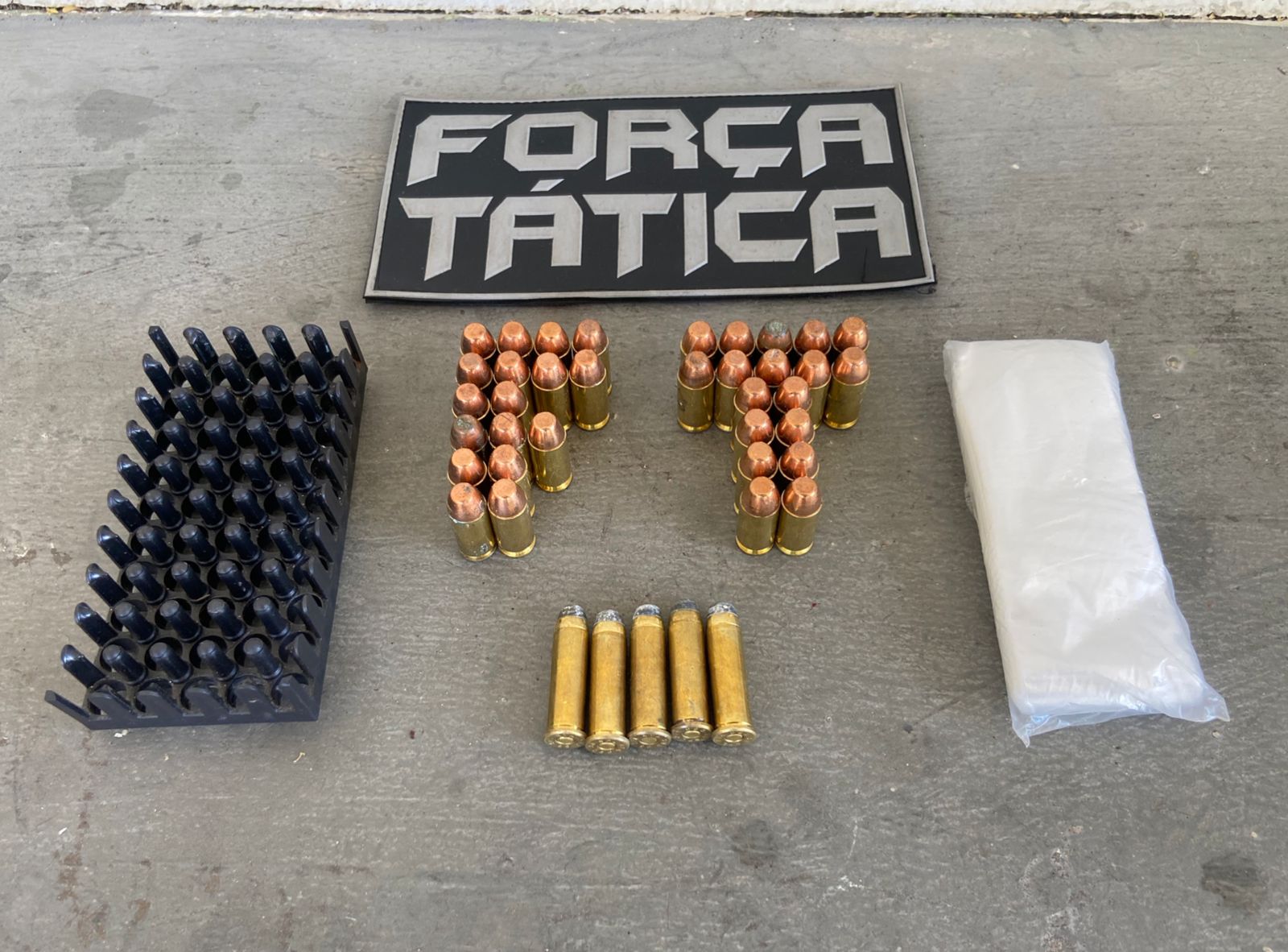 A equipe BRAVO da Força Tática do 13º BPM, sediado em Tauá, apreendeu 40 munições de calibres diferentes após receber uma denúncia anônima por volta do meio dia, sobre a existência de um ponto de venda de droga na Rua Manoel de Sousa Neto, Bairro São Geraldo II.