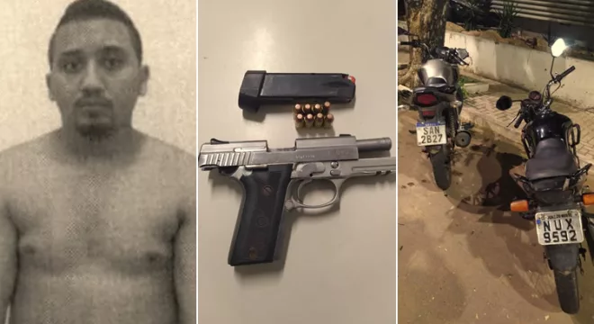 Nesse caso, a Honda CG 160 Fan de cor cinza foi localizada em frente à empresa Eva Brasil na Avenida Humberto Bezerra. Na área, populares informaram aos PMs que um homem tinha acabado de passar correndo pela Rua Madre Nely Sobreira quando foi solicitado apoio para diligências. Quando Márcio de Araújo da Silva, de 25 anos, viu a aproximação das viaturas jogou no solo sua pistola e se entregou aos policiais já na Rua Estelita Silva em frente ao buffet Algodão Doce no bairro Limoeiro.