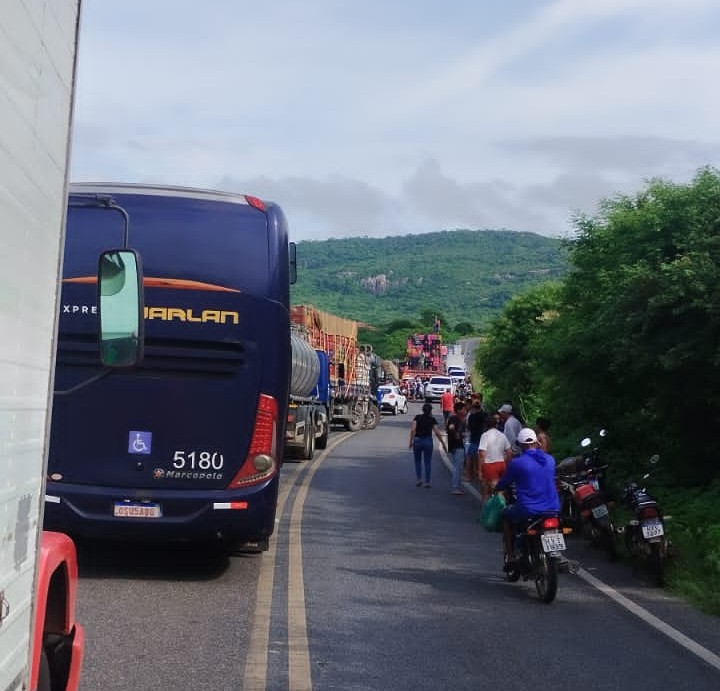 O acidente ocorreu na madrugada de hoje (04/04), quando uma carreta Scânia, cor vermelha, placas QFV-8I24, com inscrição do município paraibano de São Bento, que transportava uma carrada de frutas tombou bloqueando a passagem de veículos.