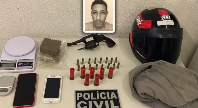Policiais Civis da Delegacia de Barbalha prenderam em flagrante um jovem no Juazeiro e apreenderam um menor com drogas, arma e munições. Foi no bairro Antonio Vieira e são investigados por homicídios e lesões corporais, além de integrantes de facção criminosa. Paulo Vítor Oliveira Rodrigues, de 18 anos, apelidado por “PL”, mora no bairro Cirolandia em Barbalha e estava acompanhado com um adolescente de 16 anos.