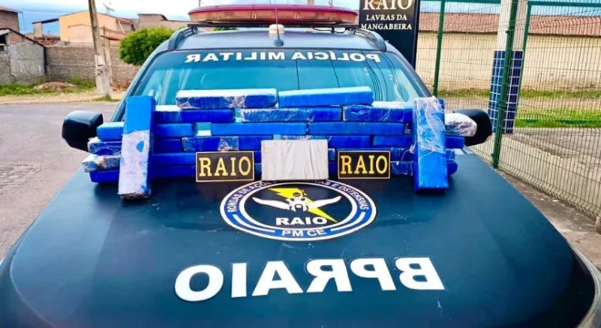 Uma equipe do RAIO prendeu Francisco Erinaldo Gonçalves Rodrigues Filho, de 31, o “Naldinho Taxista” que mora no Sítio Volta, e Cícero Leonilson Gomes de Araújo, de 34, o “Motoqueiro Fantasma”, residente no Bairro Padre Cícero ambos em Lavras da Mangabeira. Com eles, os PMs apreenderam 20 Kg de maconha, 1 Kg de cocaína e maquineta de cartão.