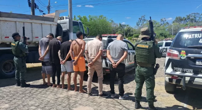 Policiais militares detiveram seis homens na manhã desta sexta-feira (25), cuja maioria é de Fortaleza e suspeita do envolvimento com crimes. A operação policial em Milagres aconteceu por volta das 10h30min na CE-397 ou Rua Cícero Gonçalves no bairro Eucaliptos. Denúncias anônimas direcionadas à polícia davam conta sobre seis homens supostamente armados e circulando num veículo Chevrolet Cobalt de cor preta pelas ruas de Milagres.
