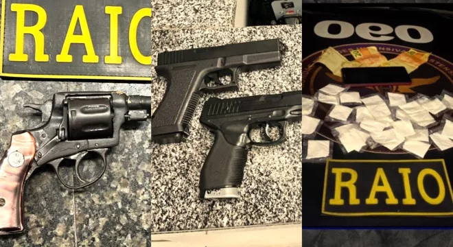 RAIO prende homem com revólver no Crato, simulacros e balaclava em Caririaçu e menor com drogas em Mauriti