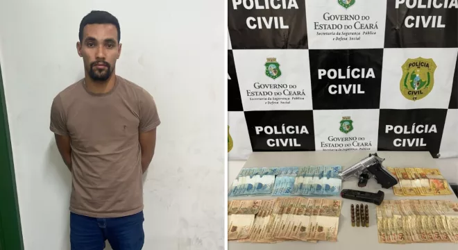 Um homem foi preso na Rodoviária de Crato com uma pistola, bastante dinheiro e ainda tinha contra sí um mandado de prisão em aberto por homicídio. Foi por volta das 21 horas desta quinta-feira (11) quando policiais civis da 2ª Seccional de Interior Sul em Juazeiro cumpriram Mandado de Prisão Preventiva. A ordem judicial foi expedida pela Comarca de Moju (PA), onde o vendedor de produtos medicinais Juliano Jozuel da Silva, de 29 anos, reside e matou uma pessoa.