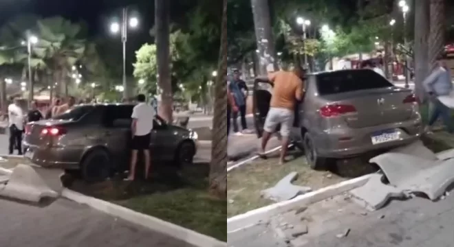 Imagens registradas por transeuntes mostram o veículo, que seguia pela Rua São Francisco, já dentro da Praça Padre Cícero, destruindo um dos bancos do local. Segundo relatos de pessoas que estavam no local, o condutor contou com a ajuda de populares para retirar o carro e, em seguida, deixou a área.