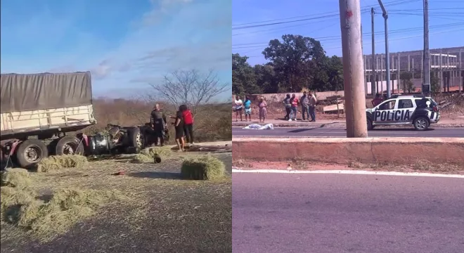 Acidente com caminhões foi em Barro e o atropelamento com vítima fatal no Juazeiro (Foto: Reprodução)
