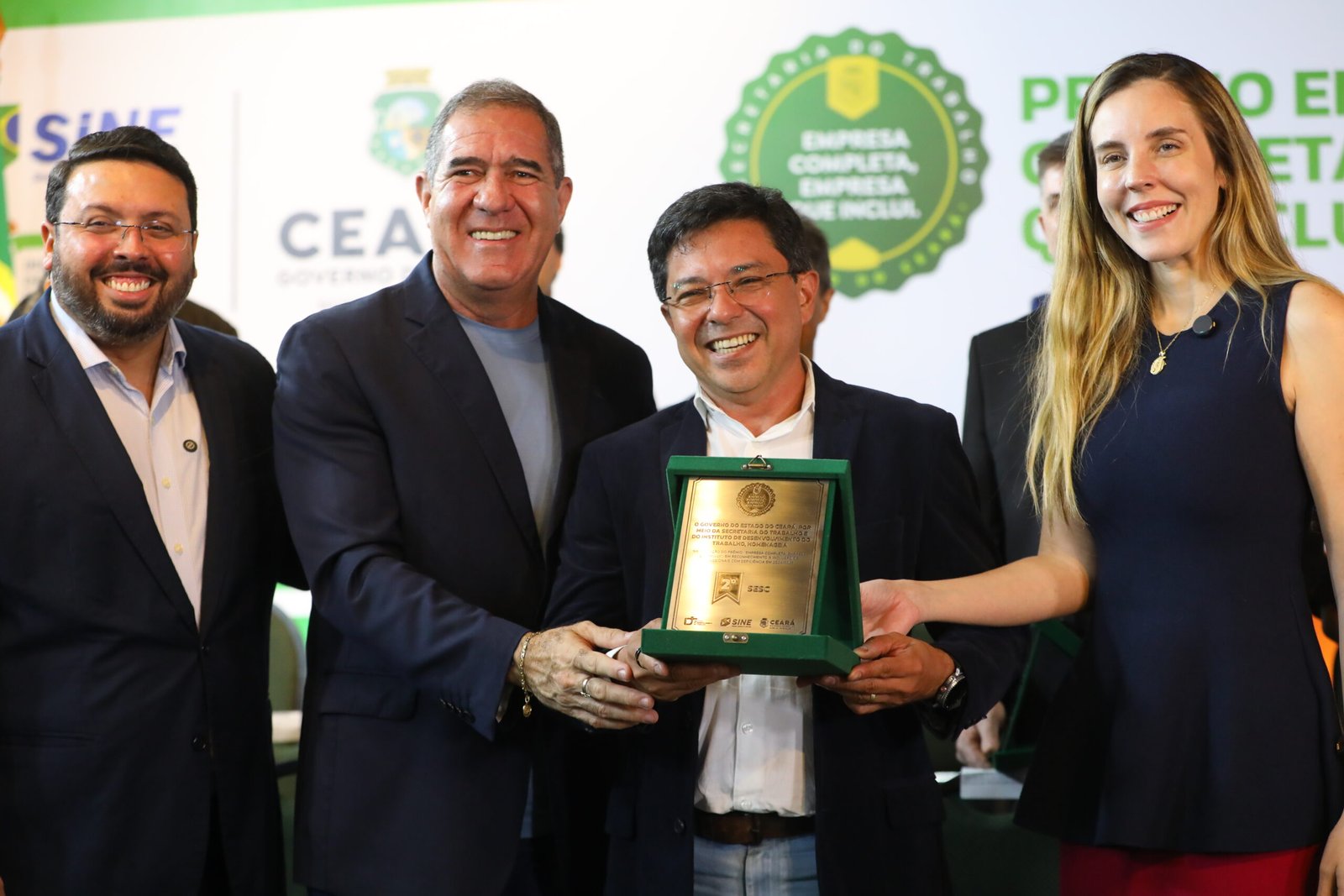 O Sistema Fecomércio Ceará, por meio do Sesc, foi reconhecido pelo Governo do Estado com o Prêmio “Empresa Completa, Empresa que Inclui”. O ato ocorreu nessa segunda-feira, no Palácio da Abolição. A premiação, que chega à sua 14ª edição, destaca as empresas que mais contrataram pessoas com deficiência (PcDs) nos anos de 2023 e 2024, por meio da rede de atendimento do IDT/Sine