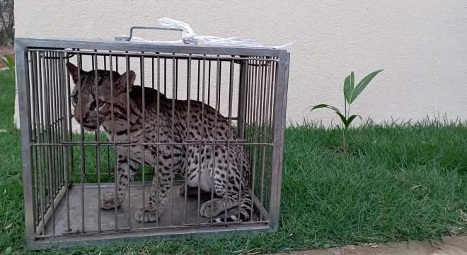 Nova ação de proteção à fauna foi realizada por militares do Batalhão de Polícia do Meio Ambiente (BPMA) no Cariri. Na tarde desta quinta-feira (27) eles resgataram uma Jaguatirica (Leopardus pardalis) no Sítio Barreiras na zona rural de Missão Velha. O animal tinha sido localizado e contido por trabalhadores da região os quais, imediatamente, acionaram a unidade de polícia ambiental.