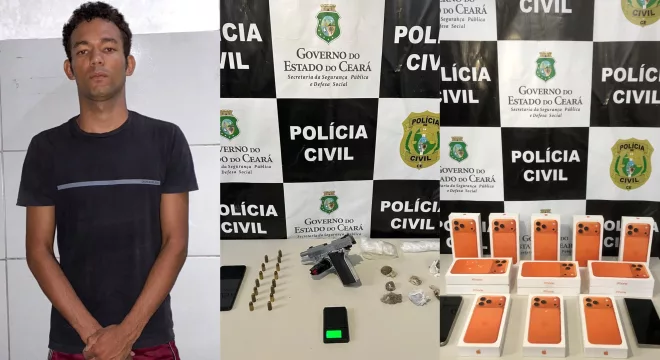 Bruno tinha em seu poder uma arma de fogo e drogas e os iPhones apreendidos com Vanderlei. | Foto: Reprodução