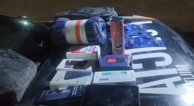 O mesmo adolescente também entrou nas Lojas Americanas, de onde retirou diversos itens. No domingo, por volta de 3h, equipes do Policiamento Ostensivo Geral (POG) do 34º Batalhão retornaram ao local após novo acionamento e encontraram o jovem escondido em uma laje. Com ele, havia uma mochila com um colchão inflável, cobertor, oito celulares, um tablet, pendrives e outros objetos furtados na madrugada anterior.
