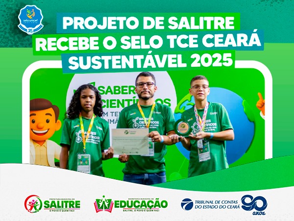 Administração Salitre "O Povo é Quem Faz" através da Secretaria de Educação comemoram mais um grande feito: o município foi agraciado com o Selo TCE Sustentável, uma honraria concedida a iniciativas que promovem impacto socioambiental, inovação e compromisso com práticas sustentáveis.