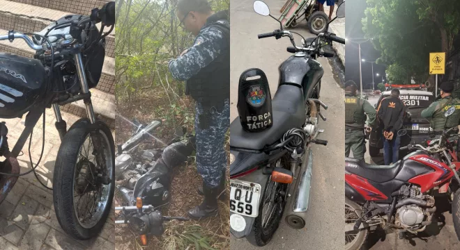 Cinco motocicletas apresentando irregularidades foram apreendidas neste fim de semana em Juazeiro. Por volta das 13 horas de sábado (03) equipe do GTM (Grupo Tático Motorizado) da Polícia Municipal recolheu uma Honda CG 125 Fan KS de cor preta e placa NVA5545 abandonada num matagal na Rua Pedro Luciano de Sousa (Campo Alegre). Já às 10 horas deste domingo outra equipe da GCM se deparou com uma moto Dafra Speed 150 de cor preta e placa NVB-5335. Era conduzida por um homem na Avenida Ailton Gomes (Franciscanos) e apresentava sinais de adulteração.