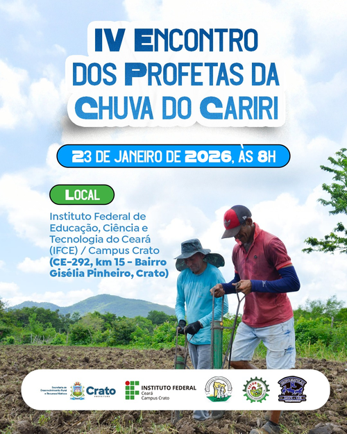 O campus de Crato do IFCE recebe nesta sexta (23) a quarta edição do Encontro de Profetas da Chuva do Cariri, promovido pela instituição em parceria com a Prefeitura Municipal do Crato e a Sindicato dos Trabalhadores e Trabalhadoras Rurais do Crato.